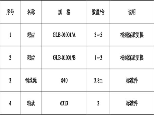 GLB4800-15型耙式(變傾角)給料機易損件明細(xì)表: